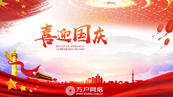 金秋十月迎國慶,舉國同慶賀生辰;繁花似錦添新顏,樂曲如潮唱和平;祖國繁榮享生活,闔家歡樂品幸福。時(shí)值國慶節(jié)來臨之際,萬戶網(wǎng)絡(luò)祝各位新老客戶國慶快樂!